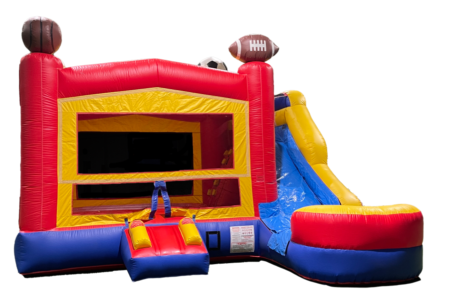 The Combo Bounce House is not just any inflatable—it's a complete entertainment package! Featuring a spacious 13x13ft bounce area complemented by a thrilling slide, this combo unit is perfect for those who love both bouncing and sliding. With sporty decorations and inflatable sports balls adorning each pillar, it adds a festive and sporty touch to any event.