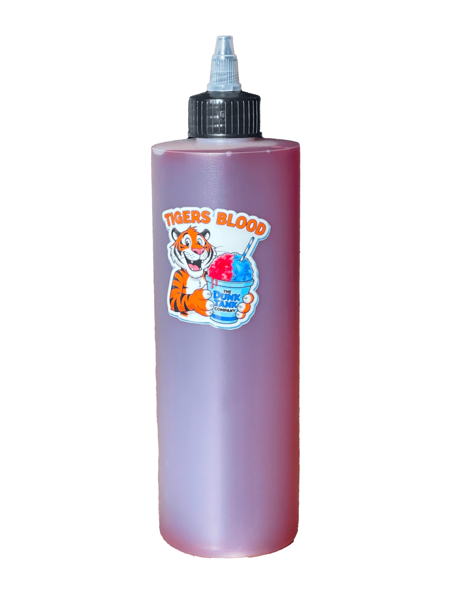 Add Tiger's Blood to your Snow Cone Machine rental from The Dunk Tank Company — delivered throughout Flint, Grand Blanc, Davison, Burton, Flushing, Clio, Mount Morris, Fenton, Lapeer, and all of Genesee and Lapeer Counties.