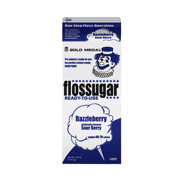 We use Gold Medal Flossugar — the industry-standard commercial cotton candy sugar used at professional carnivals, stadiums, and events nationwide. Add Razzleberry Sour to your Cotton Candy Machine rental from The Dunk Tank Company — delivered throughout Flint, Grand Blanc, Davison, Burton, Flushing, Clio, Mount Morris, Fenton, Lapeer, and all of Genesee and Lapeer Counties.