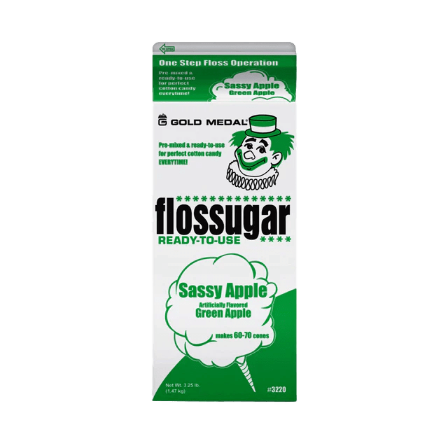 We use Gold Medal Flossugar — the industry-standard commercial cotton candy sugar used at professional carnivals, stadiums, and events nationwide. Add Sassy Apple to your Cotton Candy Machine rental from The Dunk Tank Company — delivered throughout Flint, Grand Blanc, Davison, Burton, Flushing, Clio, Mount Morris, Fenton, Lapeer, and all of Genesee and Lapeer Counties.