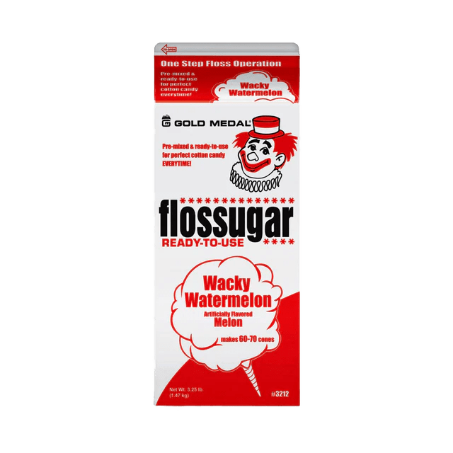 We use Gold Medal Flossugar — the industry-standard commercial cotton candy sugar used at professional carnivals, stadiums, and events nationwide. Add Wacky Watermelon to your Cotton Candy Machine rental from The Dunk Tank Company — delivered throughout Flint, Grand Blanc, Davison, Burton, Flushing, Clio, Mount Morris, Fenton, Lapeer, and all of Genesee and Lapeer Counties.