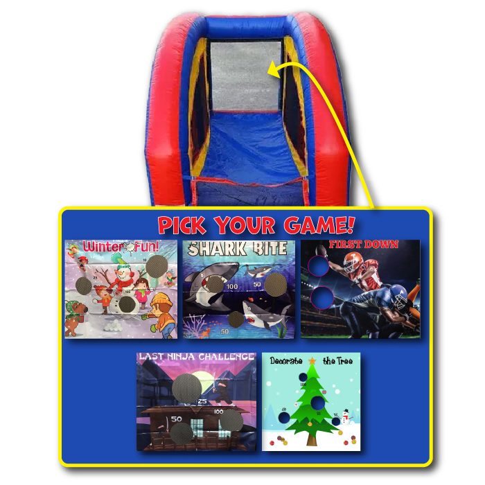 Bring variety, excitement, and flexibility to any event with the Inflatable Frame Game System from The Dunk Tank Company. Based in Genesee County and serving all of Michigan, this innovative rental lets you choose from multiple interchangeable game tarps — giving you the freedom to customize the perfect attraction for any season or theme.