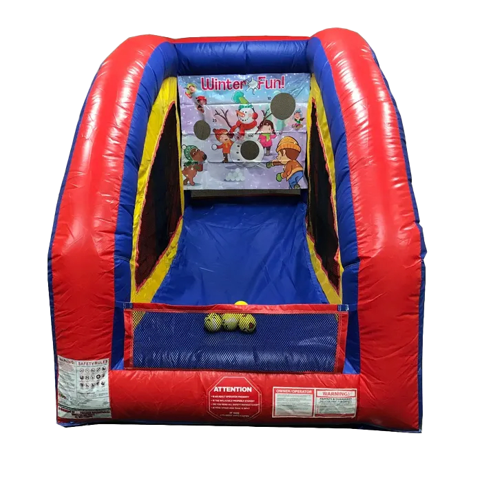 Bring snow-day excitement indoors or out as players toss soft snowballs at a smiling snowman. The snowballs drop through the target holes and roll back for nonstop winter fun — ideal for holiday parties, church gatherings, and city winter festivals.