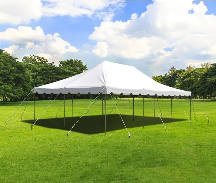 Keep your event covered, comfortable, and ready for guests with our 20x30 Pole Tent Rental from The Dunk Tank Company. This classic party tent is a great option for graduation parties, backyard celebrations, school functions, church events, family reunions, and community gatherings that need dependable outdoor coverage with a timeless tented look.