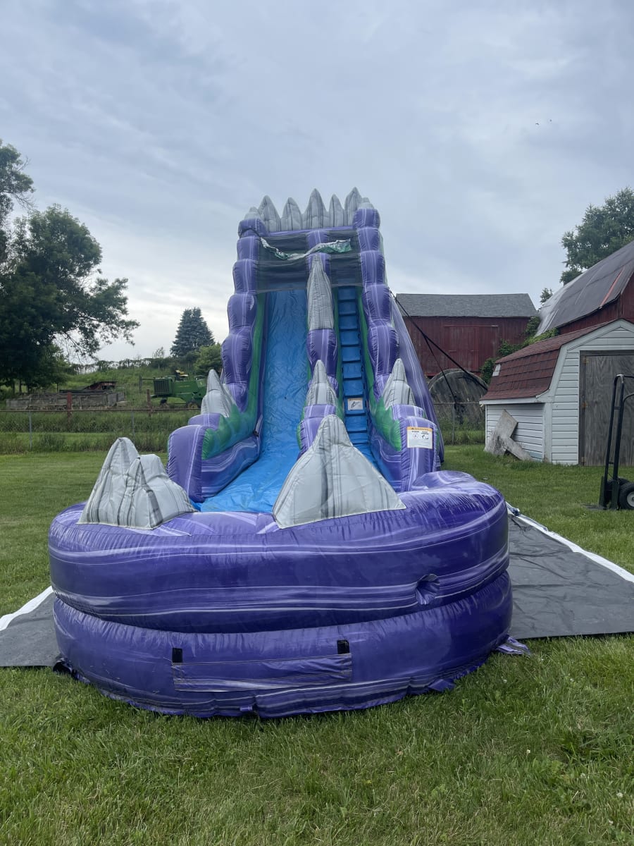 Transform your summer events into unforgettable celebrations with the 19' Ireland's Dream Waterslide! This stunning waterslide is not just a treat for the eyes with its vibrant purple and green design, but it also promises endless fun for kids and adults alike. Standing at an impressive 19 feet, it offers an exhilarating ride down into a refreshing pool at the bottom, making it the perfect addition to any party.