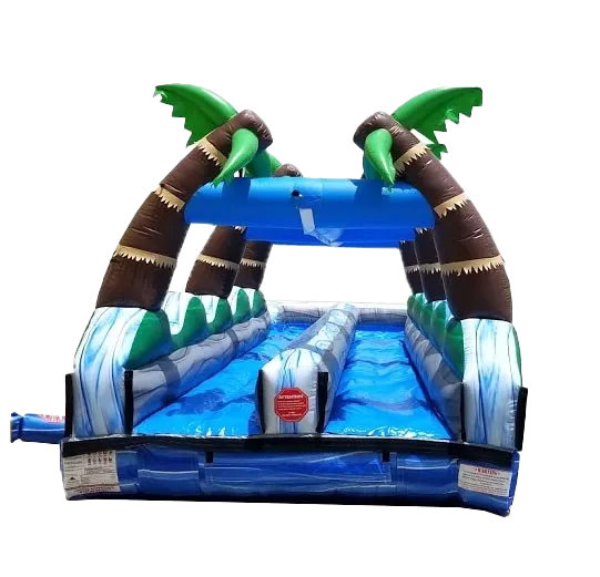 Turn up the heat on summer fun with our 35ft Tropical Marble Dual Lane Slip n Slide – the ultimate high-energy attraction for school field days, church festivals, summer camps, and backyard bashes! With two exciting lanes for side-by-side racing, this vibrant tropical-themed inflatable delivers nonstop action and splash-filled thrills.